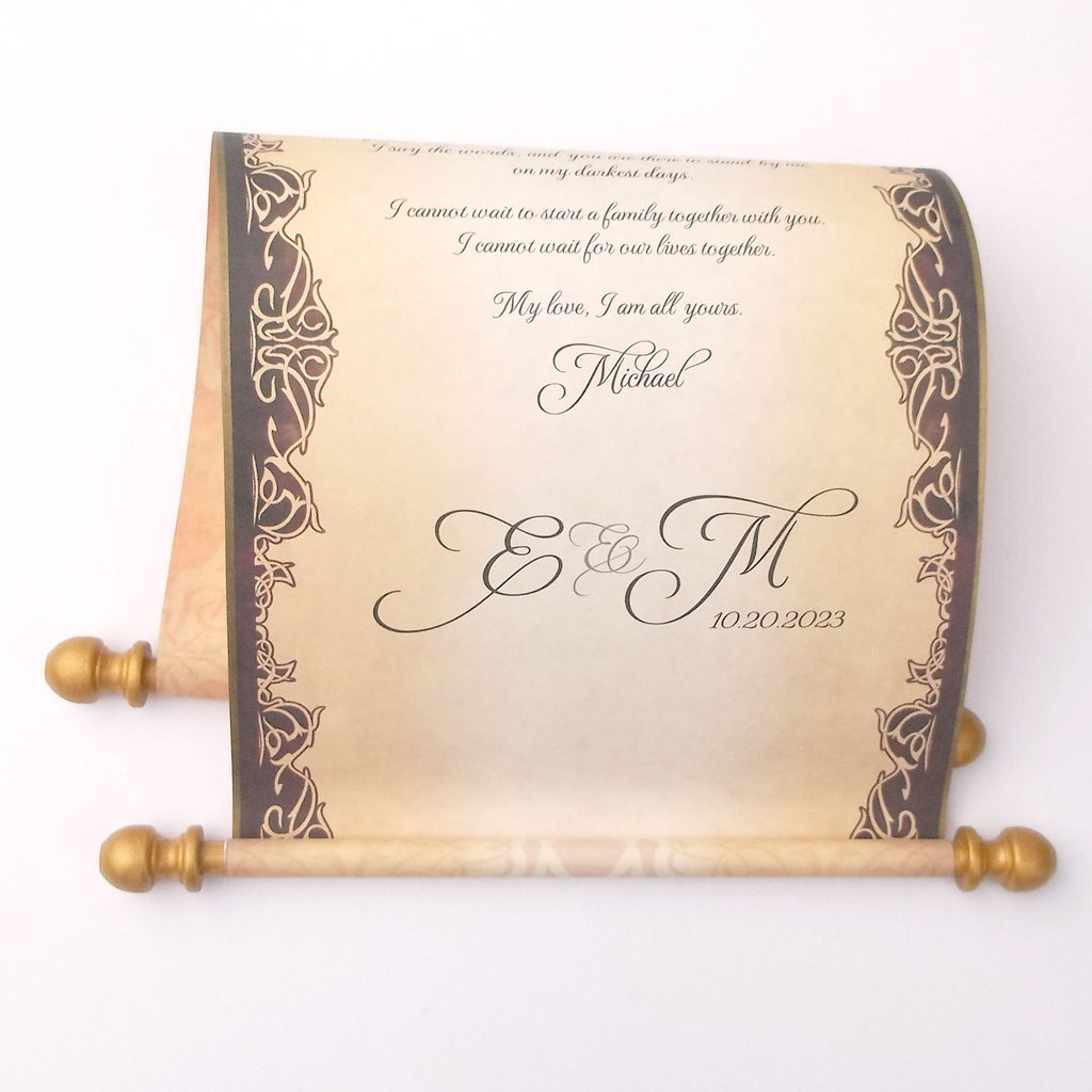 Custom hand made to order in Vermont, US from domestic and imported materials. Exclusively at Artful Beginnings, LLC. Customized scrolls are non refundable and non returnable.