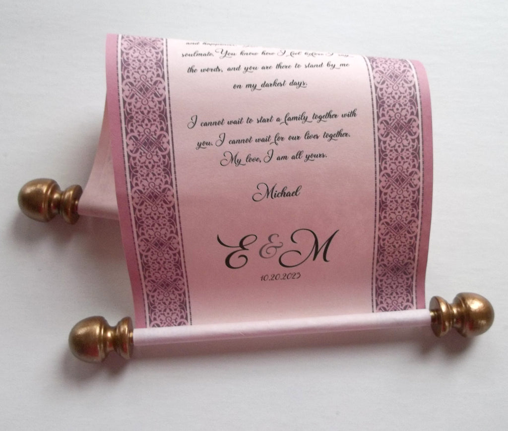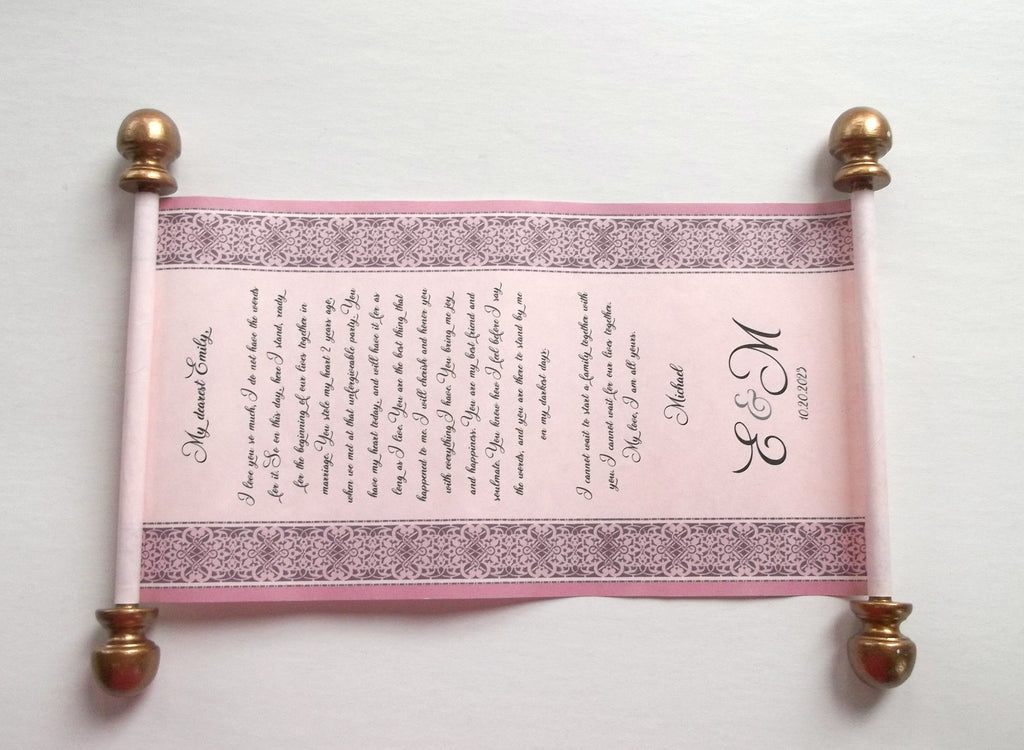 To customize, send your final, complete and proofread wording with order, or in a separate email as text that can be directly copied/pasted. Scroll is priced for a simple layout only, similar to sample pictured, which does not necessitate sending a complex formatted document. Adding emojis, images, logos or anything other than text is not supported. Attachments will not be opened, links will not be followed.