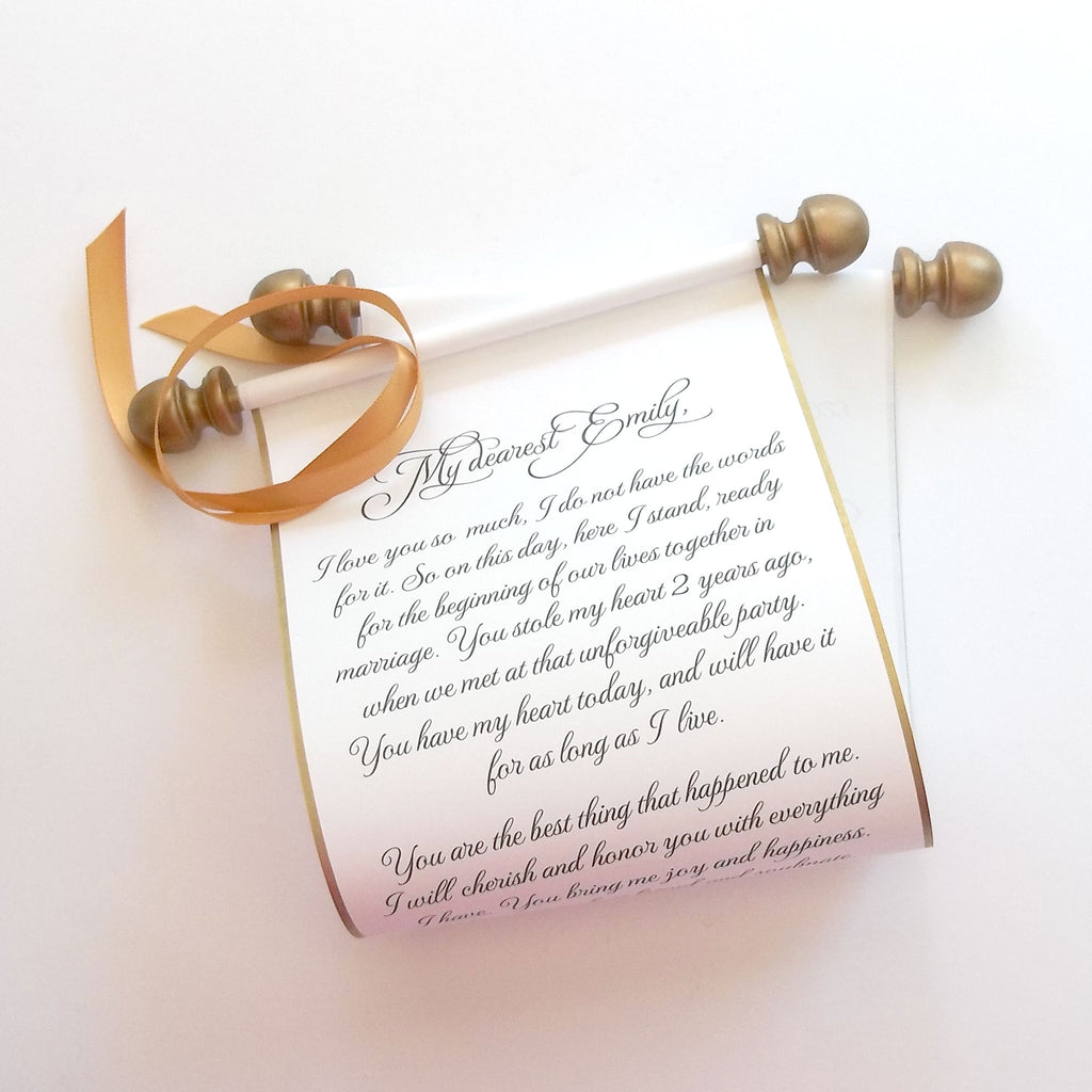 To customize, send your final, complete and proofread wording with order, or in a separate email as text that can be directly copied/pasted. Scroll is priced for a simple layout only, similar to sample pictured, which does not necessitate sending a complex formatted document. Adding emojis, images, logos or anything other than text is not supported. Attachments will not be opened, links will not be followed.