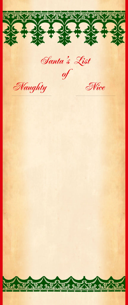 Santa List of Naughty or Nice blank scroll, Nordic design, 8x19 inch parchment paper